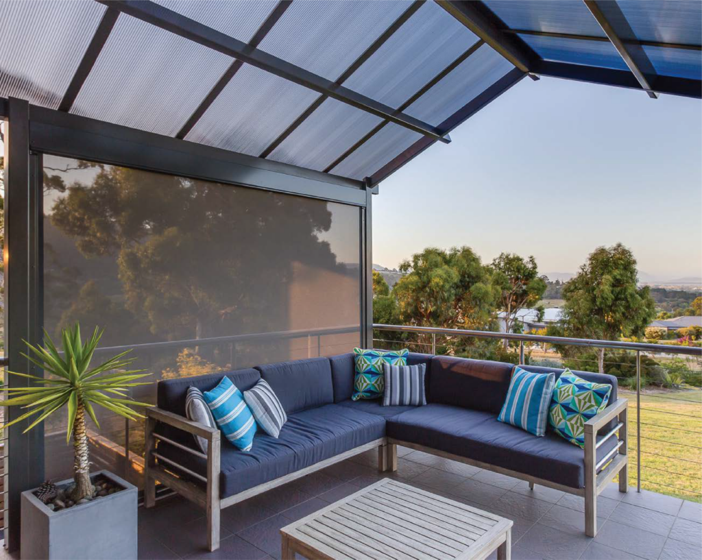Offering protection during every season from UV, sun, wind, and rain for year-round outdoor entertaining.